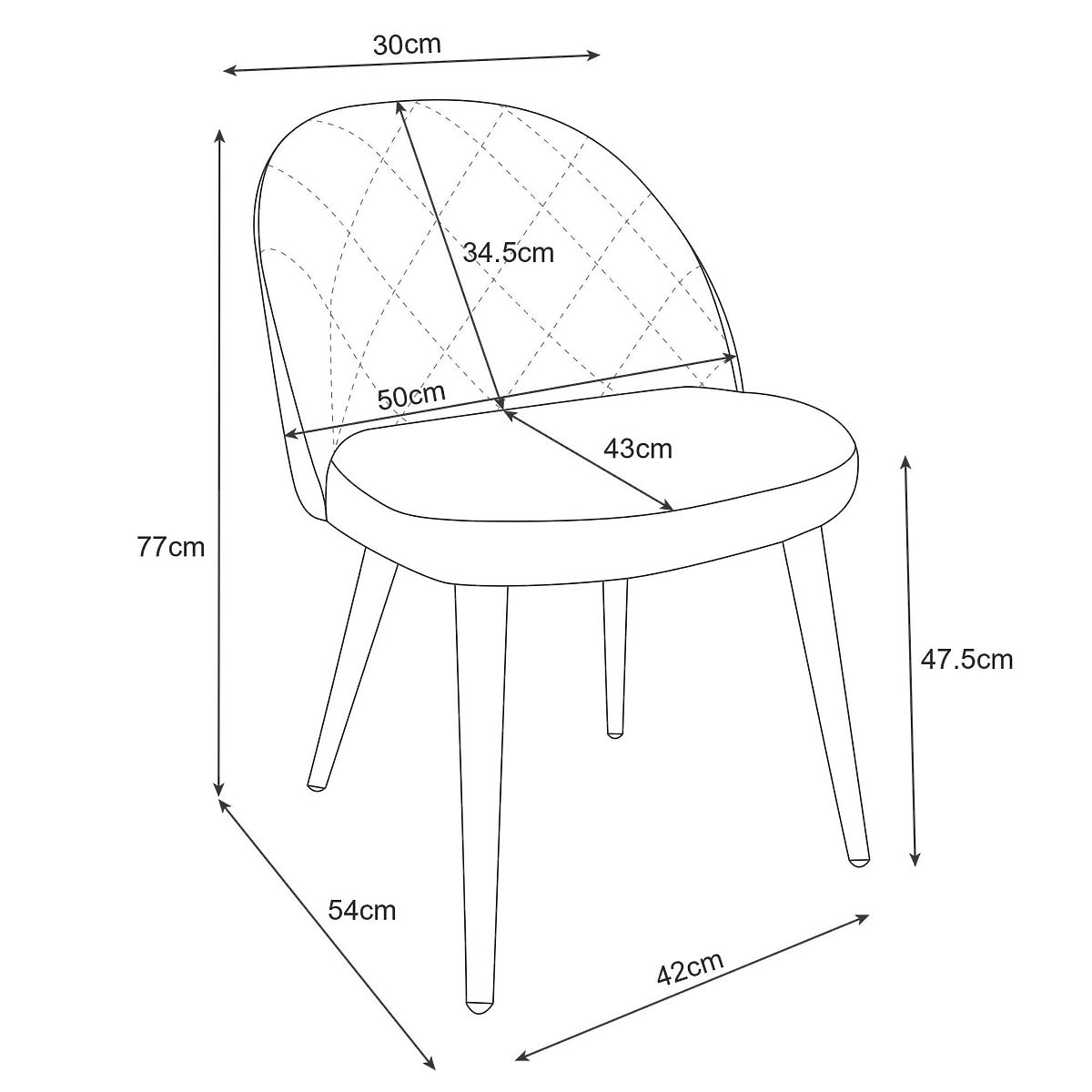 Nasze pikowane aksamitne krzesło SJ.077 ma niskie oparcie wypełnione pianką tapicerską i pokryte wyjątkowo miękką aksamitną tkaniną. Elementem, który zwiększa dekoracyjną wartość krzesła, są gustowne szwy zdobiące przednią część. Półokrągły kształt oparcia otacza użytkownika, zapewniając mu poczucie wyjątkowego komfortu. Oparcie ma szerokość 54 cm i wysokość 31 cm.