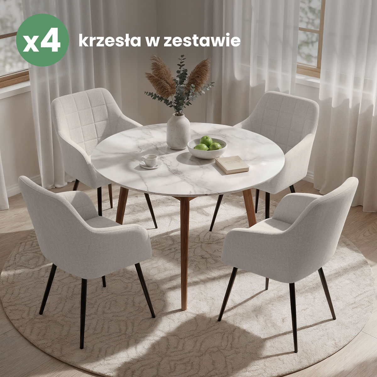 Banaby.pl » Meble / Jadalnia / Krzesła do jadalni / 4x Tapicerowane krzesło z kwadratowym pikowaniem Kremowe LUXANO Czarne nogi tkanina Lumos
