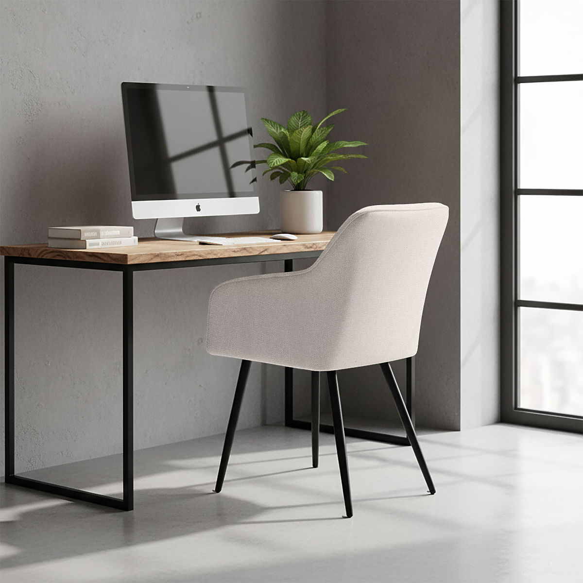 Tapicerowane krzesła łączą estetyczny wygląd z komfortem użytkowania i dobrze pasują do różnych stylów wnętrz. Ich uniwersalny kształt czyni je odpowiednimi do jadalni, salonów lub przestrzeni biurowych. Dostępne są w dwóch wariantach materiałowych – z tkaniny Lumos lub z weluru.
