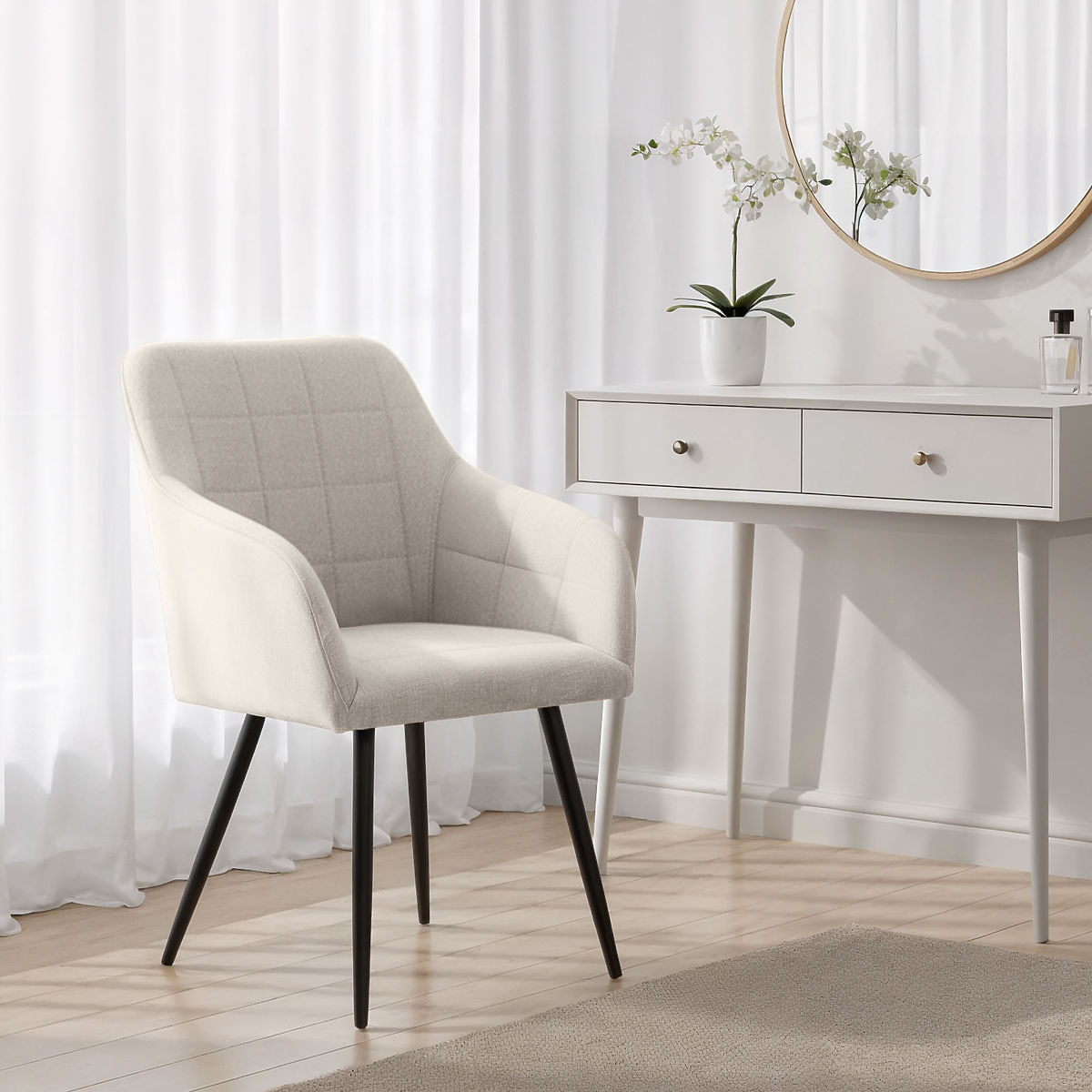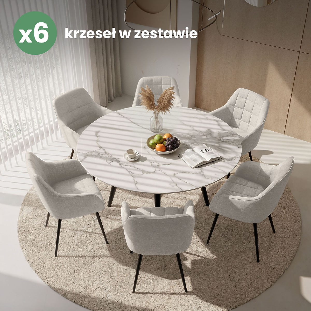 Banaby.pl » Meble / Jadalnia / Krzesła do jadalni / 6x Tapicerowane krzesło z kwadratowym pikowaniem Kremowe LUXANO Czarne nogi tkanina Lumos