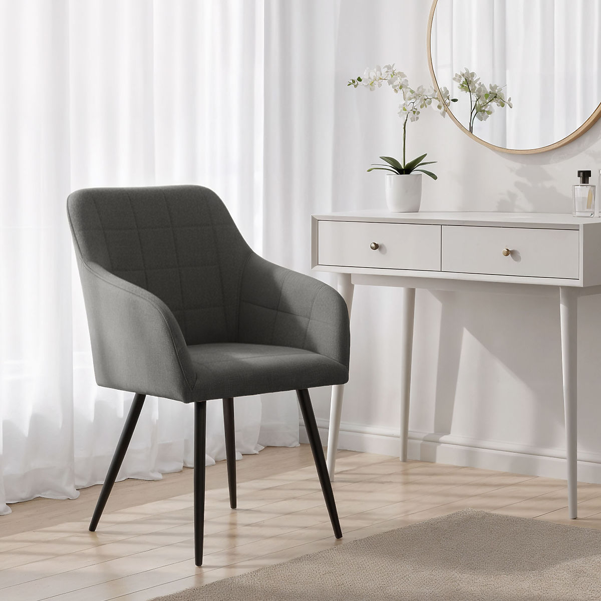 Tapicerowane krzesła łączą estetyczny wygląd z wygodą użytkowania i dobrze wpisują się w różne style wnętrz. Ich uniwersalna forma sprawia, że nadają się do jadalni, salonu lub przestrzeni biurowych. Dostępne są w dwóch wariantach materiałowych – w tkaninie Lumos lub w welurze.