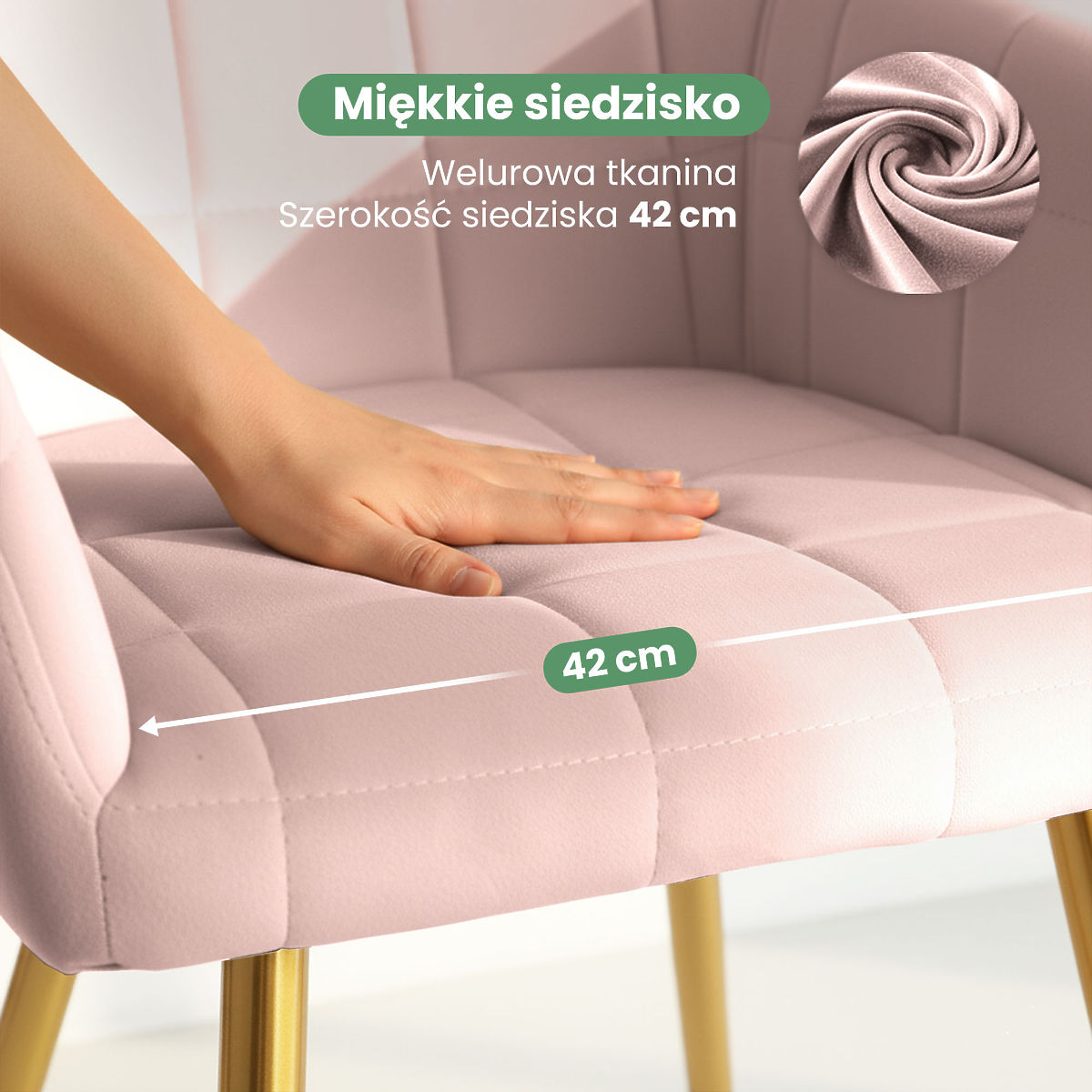 Tapicerowane krzesło LUXANO w pudrowym różu z złotymi nogami. .. więcej