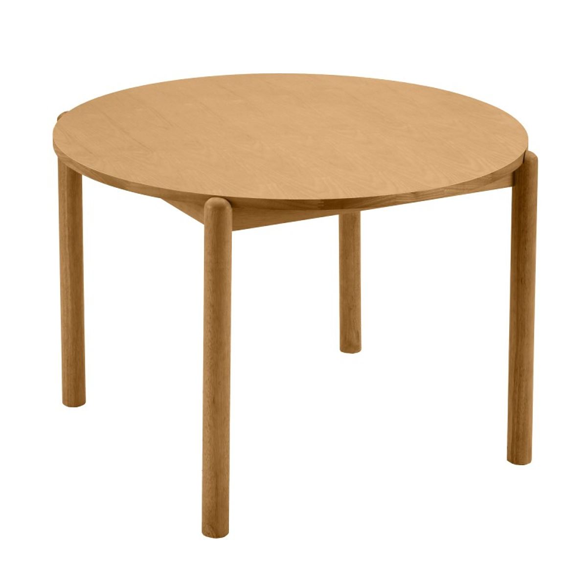 Okrągły stół Yoko z naturalnym wykończeniem i drewnianymi nogami. .. więcej