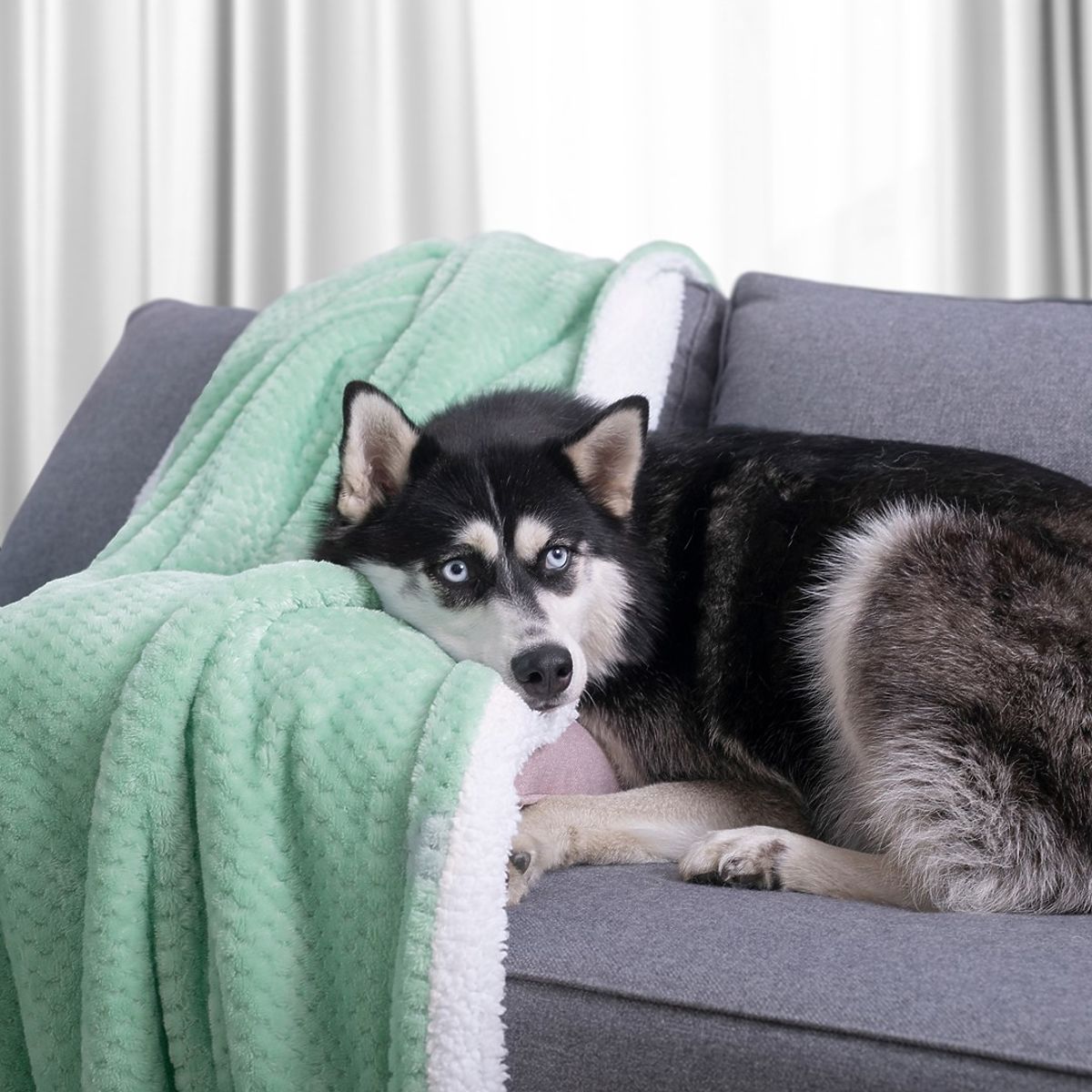 Koc SHLEEPY w kolorze miętowym zapewnia komfort i ciepło. .. więcej