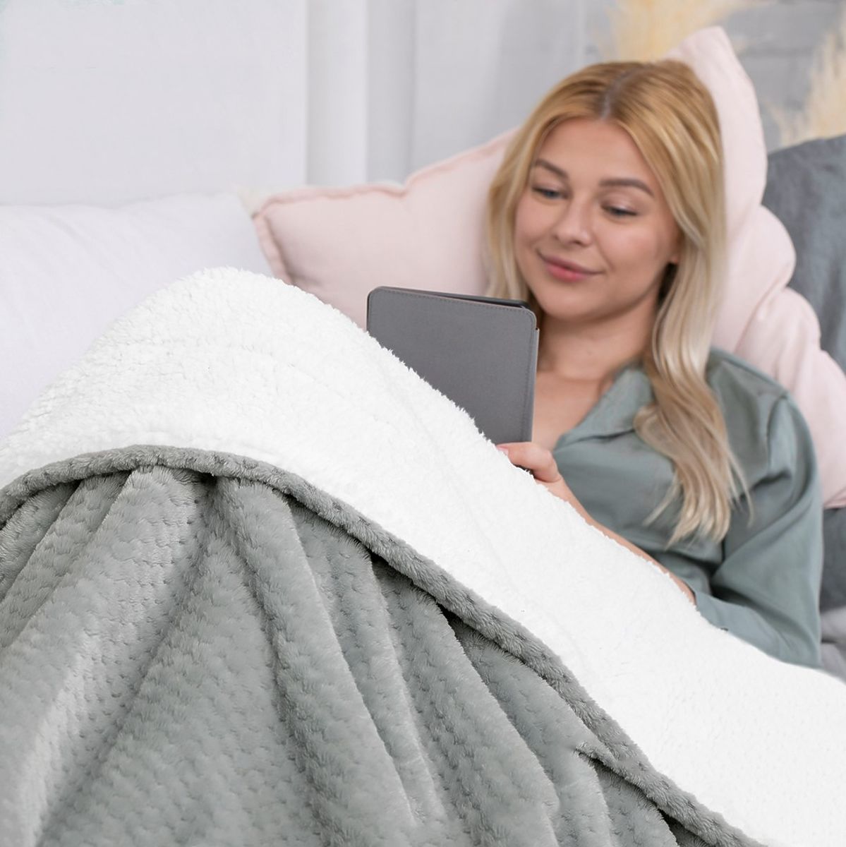 Szara narzuta SHLEEPY z żakardowym wzorem w klasycznym stylu. .. więcej