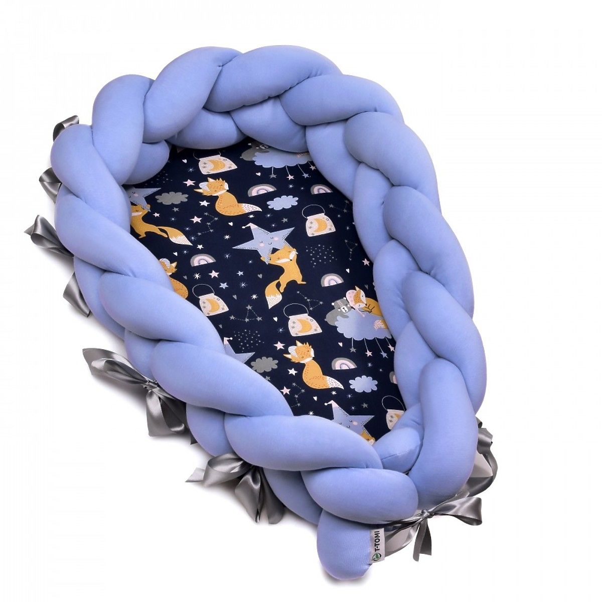 To stylowe gniazdo z dzianiny w barwach nocnego nieba z motywem lisa przekonuje nie tylko nowoczesnym designem, ale przede wszystkim wielofunkcyjnością . Gniazdko dziecka tworzy określoną przestrzeń ochronną, podobną do brzuszka mamy, zapewniając mu tym samym maksymalne bezpieczeństwo. Dziecko poczuje się bardziej komfortowo niż na świeżym powietrzu, a to zapewni spokojny sen.