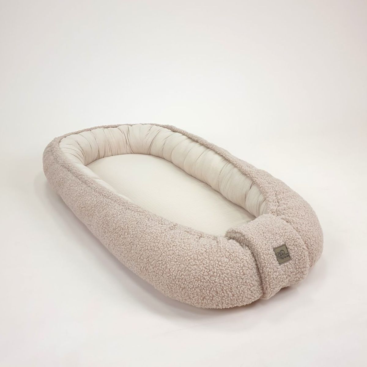 Banaby.pl » Wszystko dla niemowląt / Kokony niemowlęce / Niemowlęce gniazdko Teddy z muślinu i baranka - beżowe