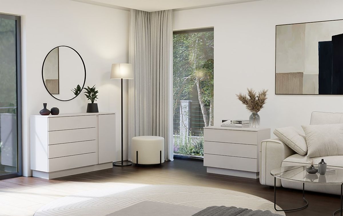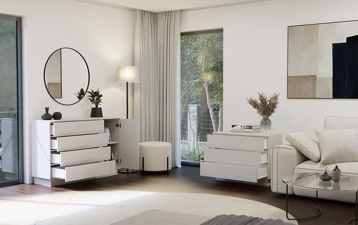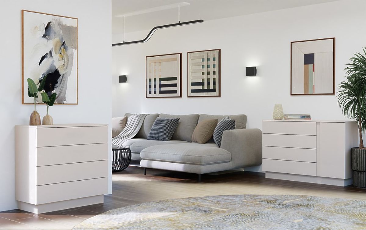 Banaby.pl » Meble dziecięce / Komody i szafy / Komody / Komoda AMBER 1D4S Szafka 1 Drzwi 4 Szuflady Do Sypialni Salonu KAŠMÍR Beżowa