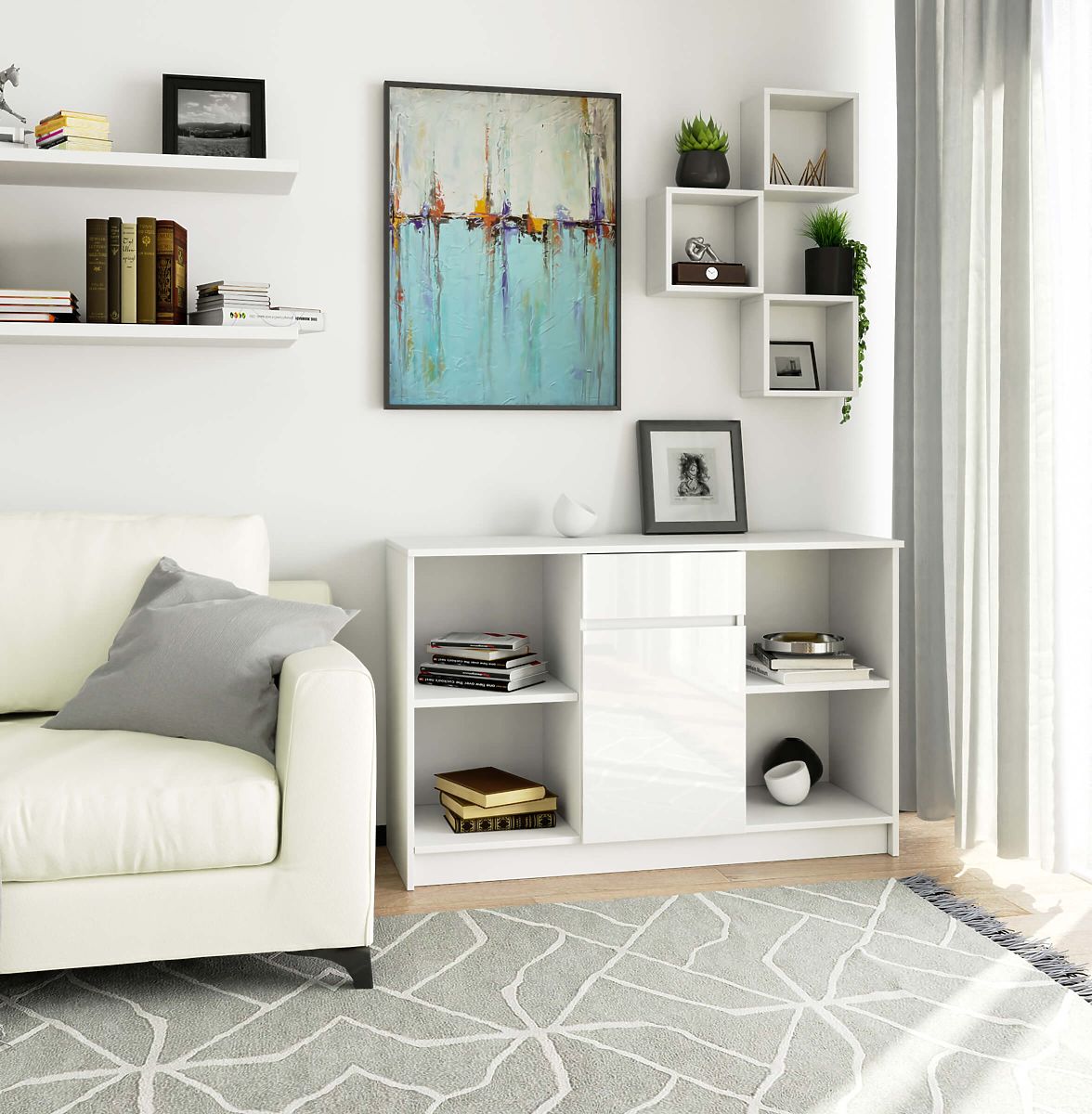 Komoda B-17 120 cm 1 szuflada 1 drzwi to niezwykle praktyczny rodzaj mebla, który idealnie pasuje do salonu, przedpokoju, biura lub pokoju nastolatka. Łączy wysoką jakość wykonania z uniwersalnym, prostym designem, który pozwala dostosować ją do wnętrz o minimalistycznym charakterze. Neutralny biały kolor i możliwość funkcjonalnego wykorzystania w różnych częściach domu czynią ją bardzo ponadczasowym meblem.