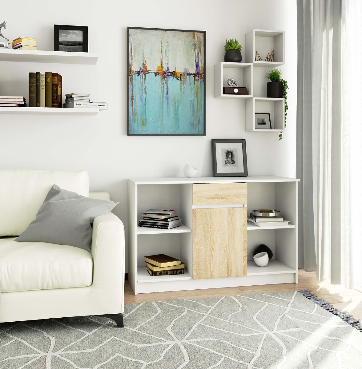Komoda z czterema półkami i jedną szufladą, Biała/Dąb Sonoma. .. więcej