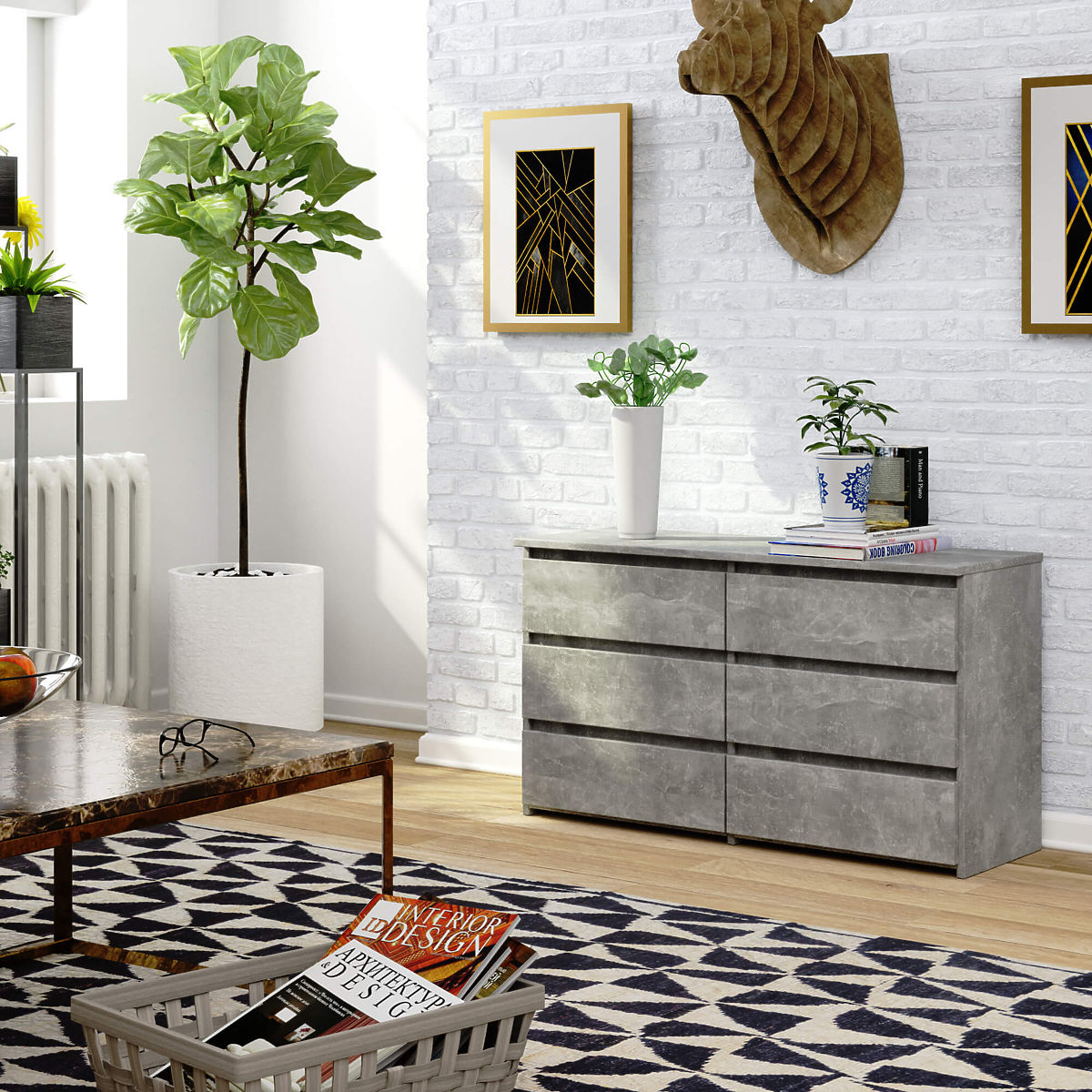 W meblarstwie kładzie się szczególny nacisk na funkcjonalność produktów i ich wysokie walory estetyczne. Doskonałym przykładem jest komoda CL 100 cm. Ten praktyczny mebel wykonany jest z trwałej płyty laminowanej, co gwarantuje jego wytrzymałość i odporność. W sześciu przestronnych szufladach zmieszczą się różne książki, dokumenty czy drobiazgi. Niektórzy nasi klienci decydują się na przechowywanie ubrań lub bielizny. Komoda w kolorze betonu ma elegancki design. Prosta forma i eleganckie wykonanie pasują zarówno do klasycznych i eleganckich wnętrz, jak i do tych romantycznych. Ten wyjątkowy mebel doskonale prezentuje się w eleganckim salonie i przytulnej sypialni. Bywa również używany jako część garderoby lub przedpokoju. Komoda z 6 szufladami jest ceniona zarówno przez klientów indywidualnych, jak i przedsiębiorców. Dzięki nienagannemu wyglądowi i niezwykłej pojemności doskonale nadaje się jako element wyposażenia biur.