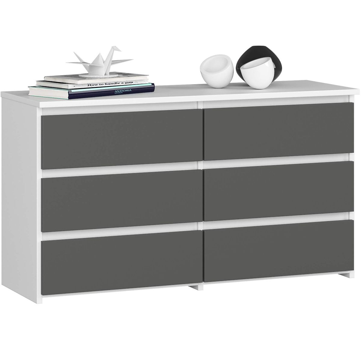 Biała komoda z grafitowymi frontami i sześcioma szufladami. .. więcej
