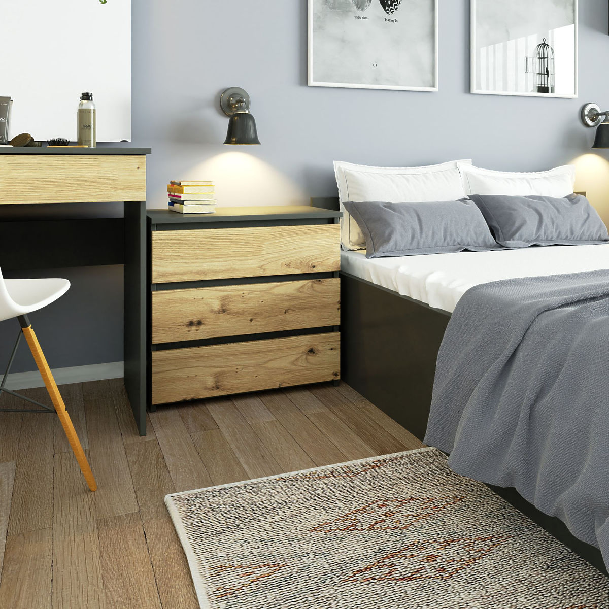 Komoda z trzema szufladami w kolorze grafitowym i dębu artisan. .. więcej
