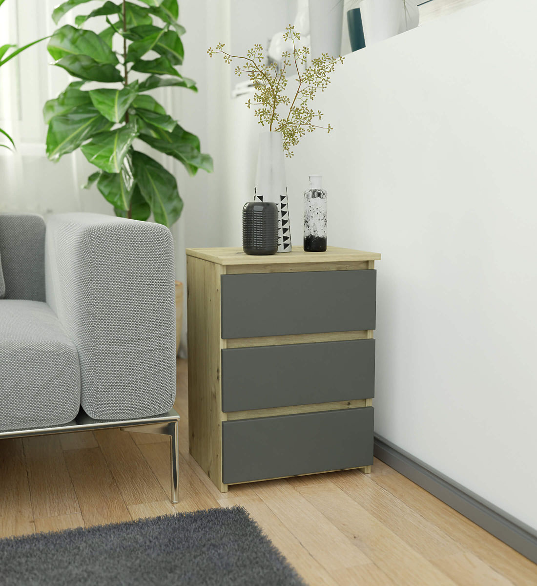 KOMODA CL3 3SZ DĄB ARTISAN / GRAFITOWY SZARY
