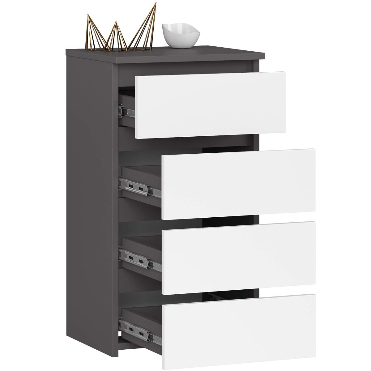 Komoda z 4 szufladami w kolorze grafit szary z białymi frontami. .. więcej