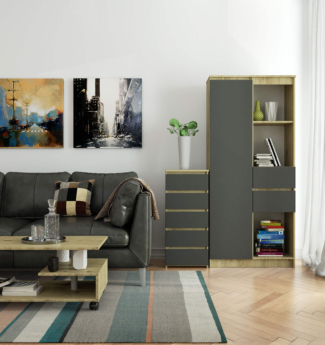 Komoda CL5 40 cm z 5 szufladami w kolorze dąb artisan i szarym. .. więcej