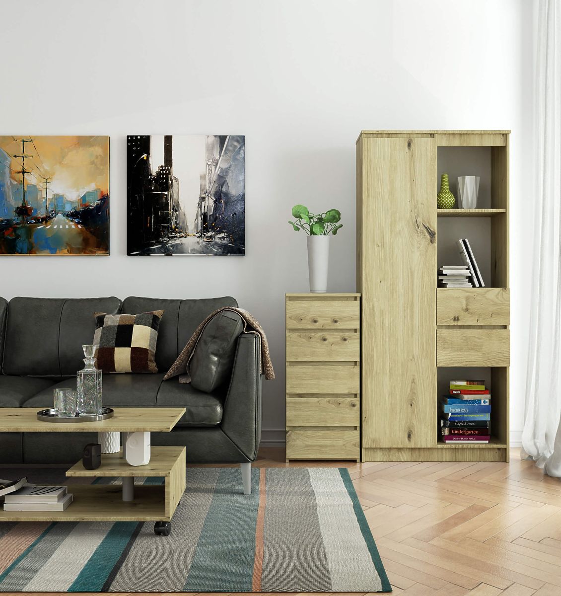 - elegancki wygląd - komoda jest prosta w formie, charakteryzuje się stylowym kolorem dąb artisan,