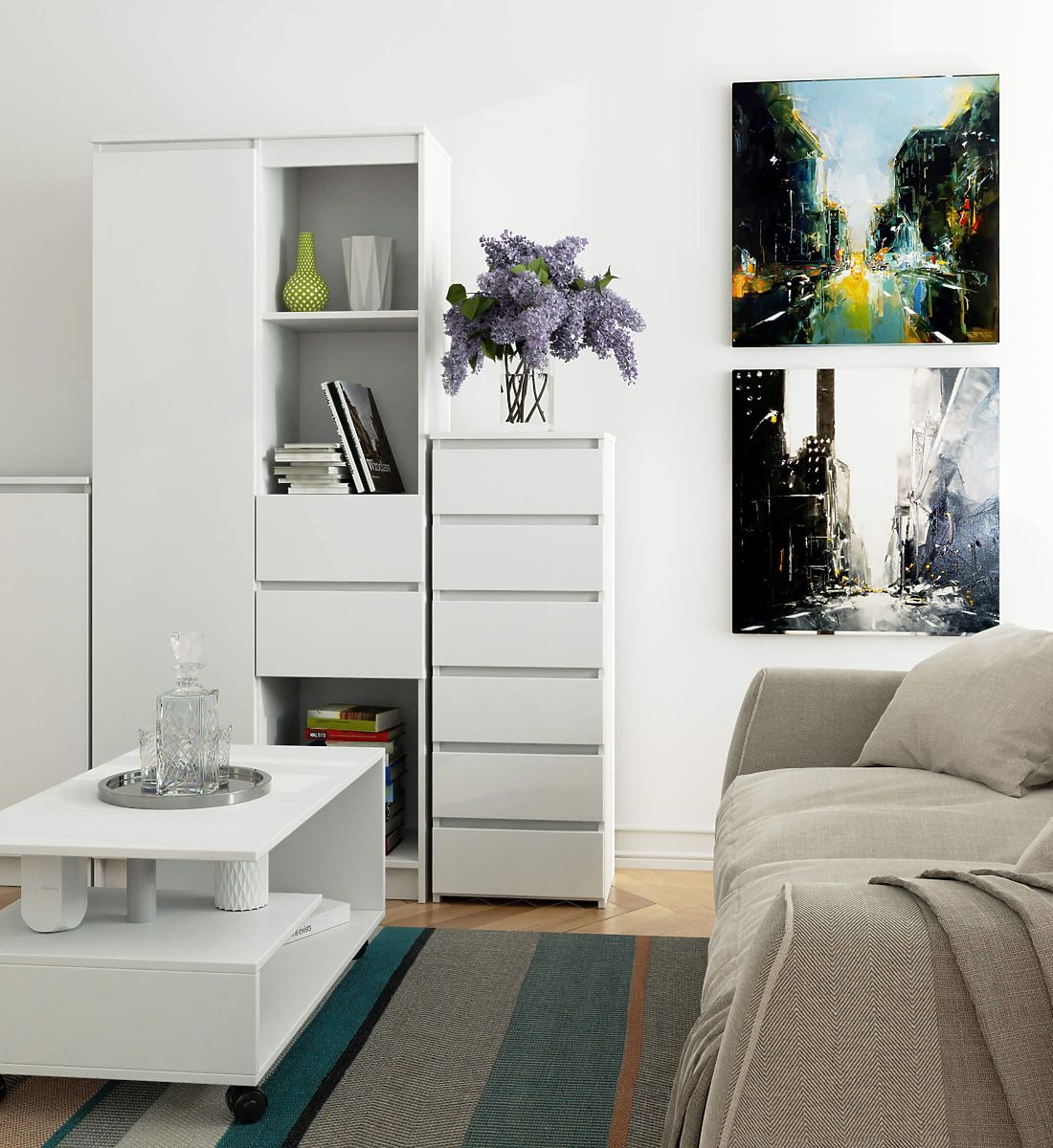 - elegancki wygląd - komoda jest prosta w formie, charakteryzuje się stylowym białym kolorem,