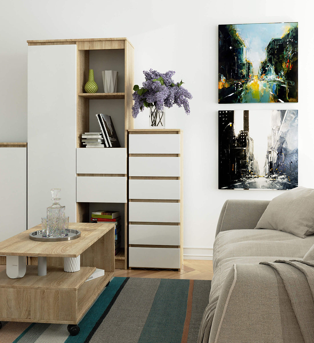Komoda CL6 40 cm z 6 szufladami w kolorze dąb sonoma i białym. .. więcej