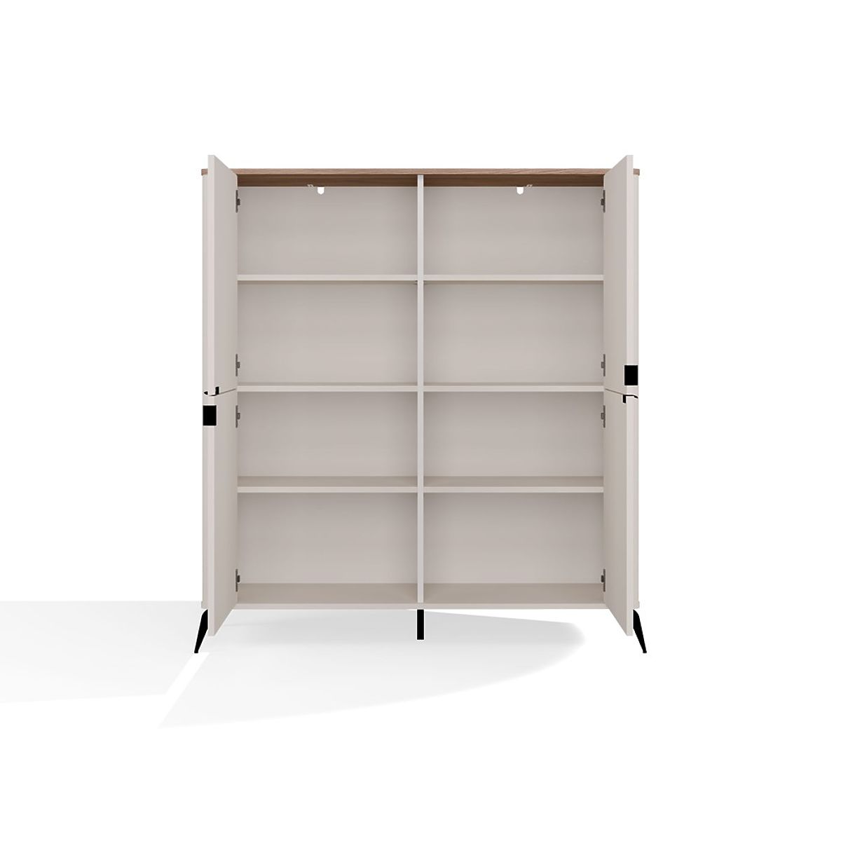 Model wyposażony jest w cztery fronty z cichym zamykaniem, za którymi kryje się aż osiem praktycznych półek – idealnych do przechowywania książek, dokumentów, tekstyliów czy codziennych dodatków.