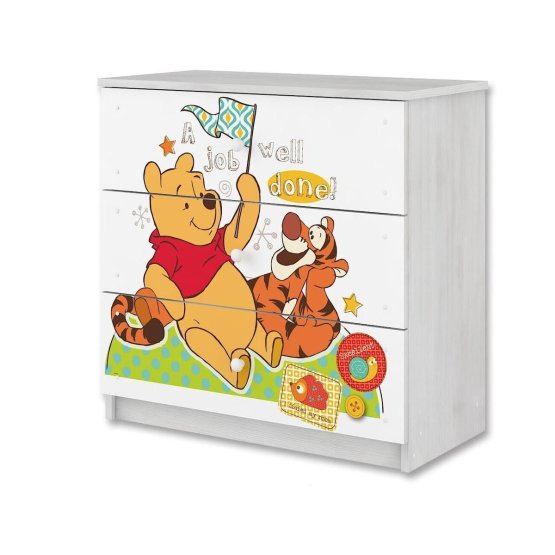 Komoda dziecięca z kolekcji Disney z kolorowym nadrukiem Kubusia Puchatka i Tygryska znajdzie zastosowanie w każdym pokoju dziecięcym. Komoda wyróżnia się nowoczesnym wykonaniem i czarującym bajkowym motywem.