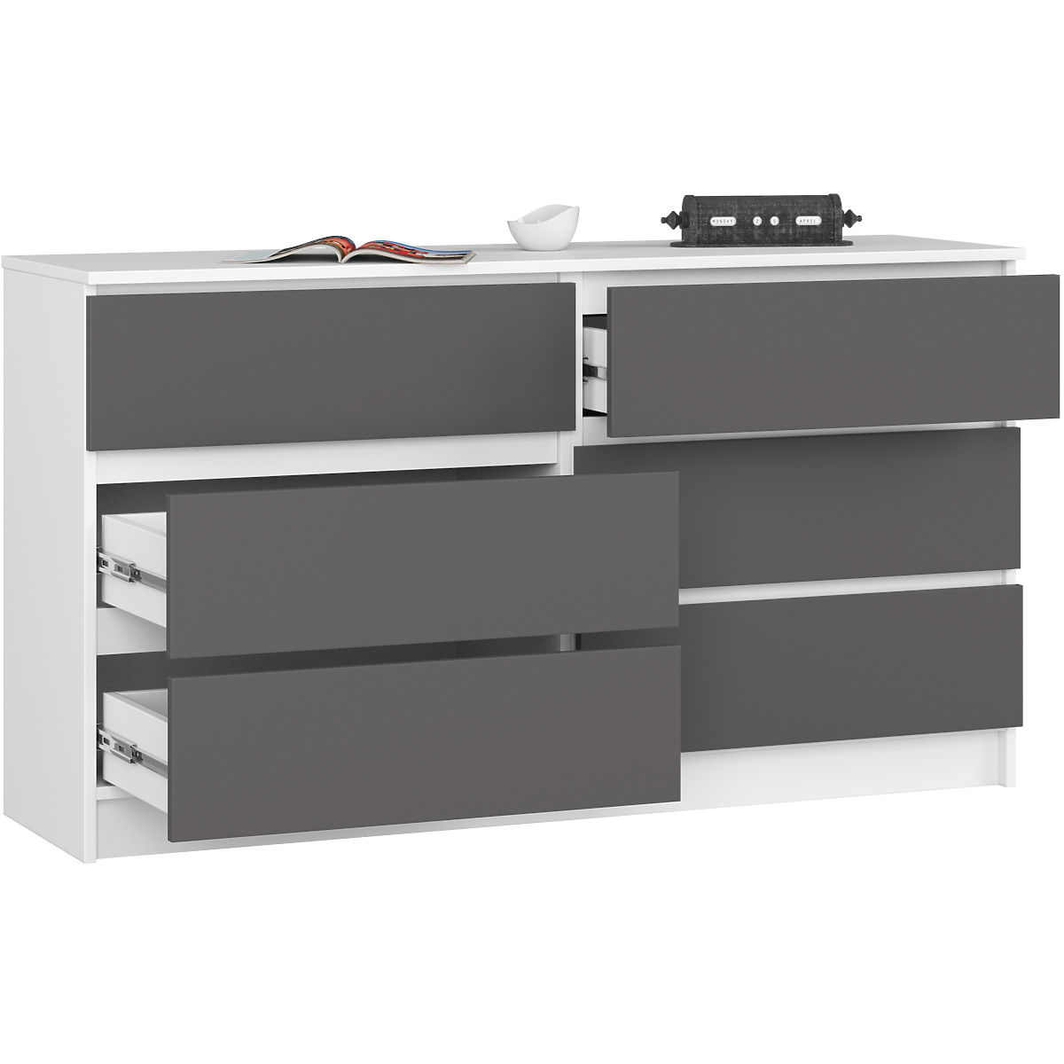 Komoda K 140 cm 6 szuflad PK biała-grafitowa szara