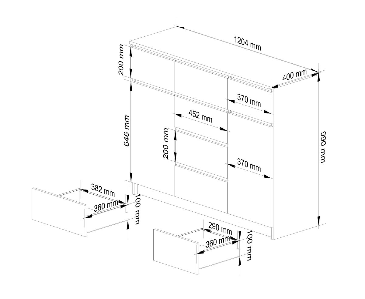 - Komoda wykonana z wysokiej jakości laminowanej płyty 16 mm odpornej na ścieranie