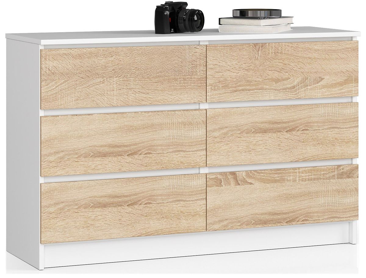 Komoda z 6 szufladami w kolorze białym i dębu Sonoma. .. więcej