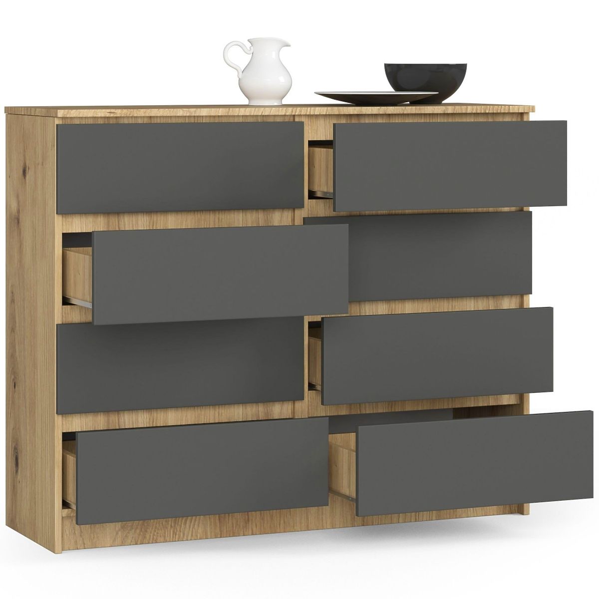 Komoda z 8 szufladami z płyty laminowanej w kolorze dąb artisan i szary. .. więcej