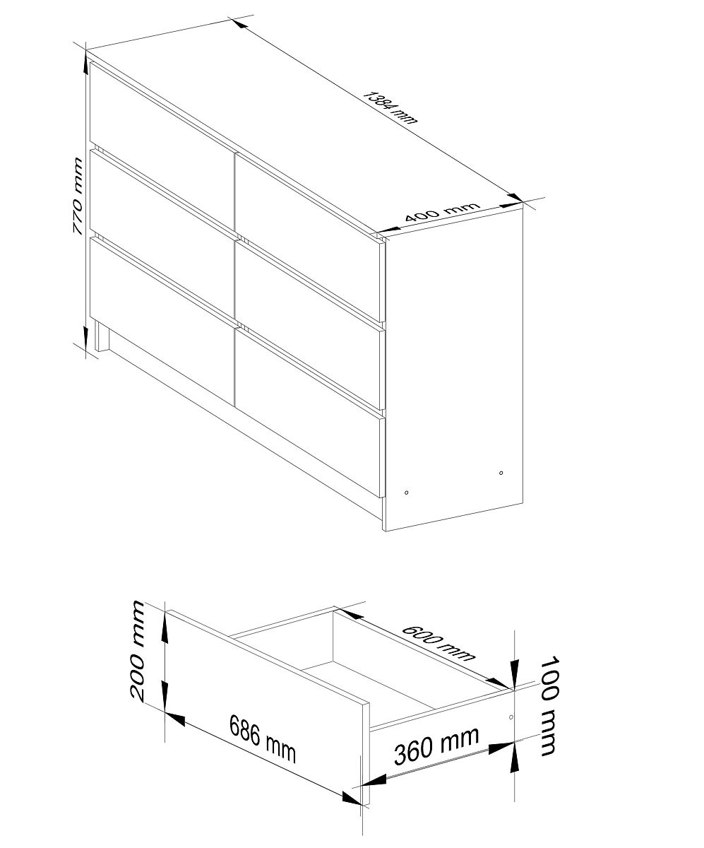 - Komoda wykonana z laminowanej płyty odpornej na ścieranie