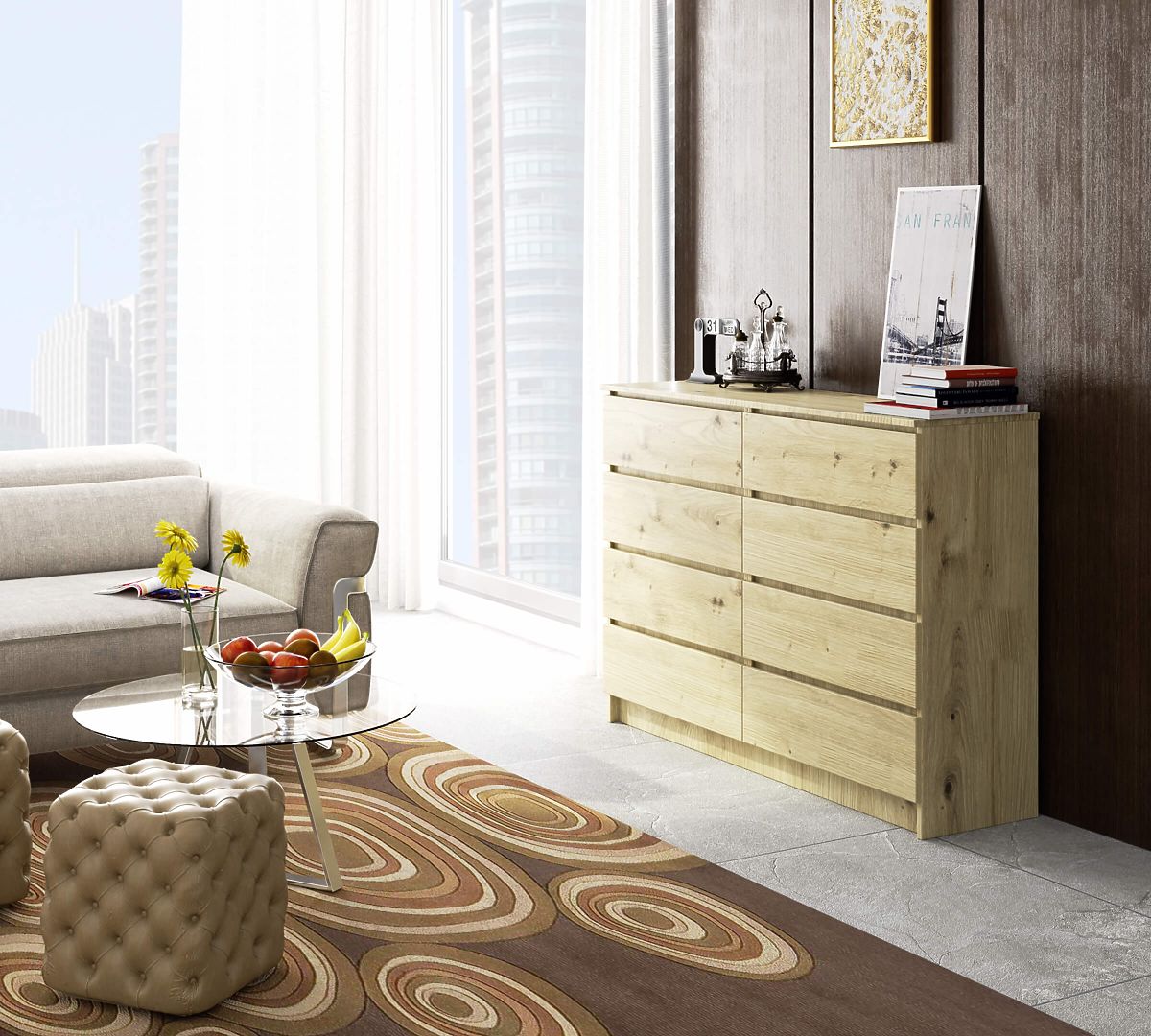 Komoda z 8 szufladami w kolorze Dąb Artisan. .. więcej