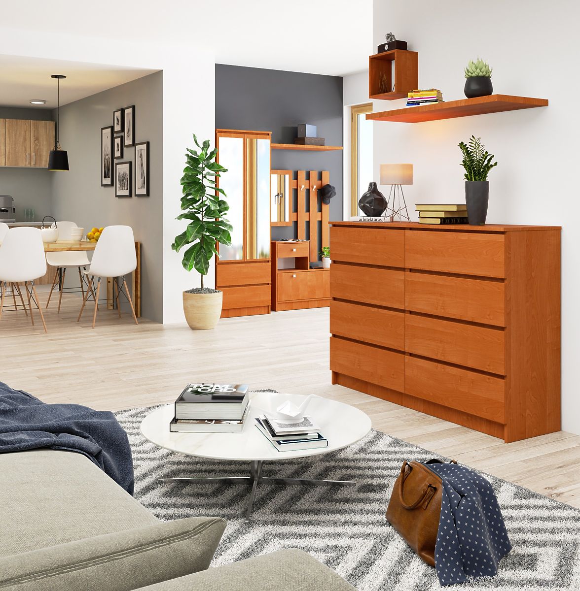- Komoda wykonana z płyty laminowanej odpornej na ścieranie