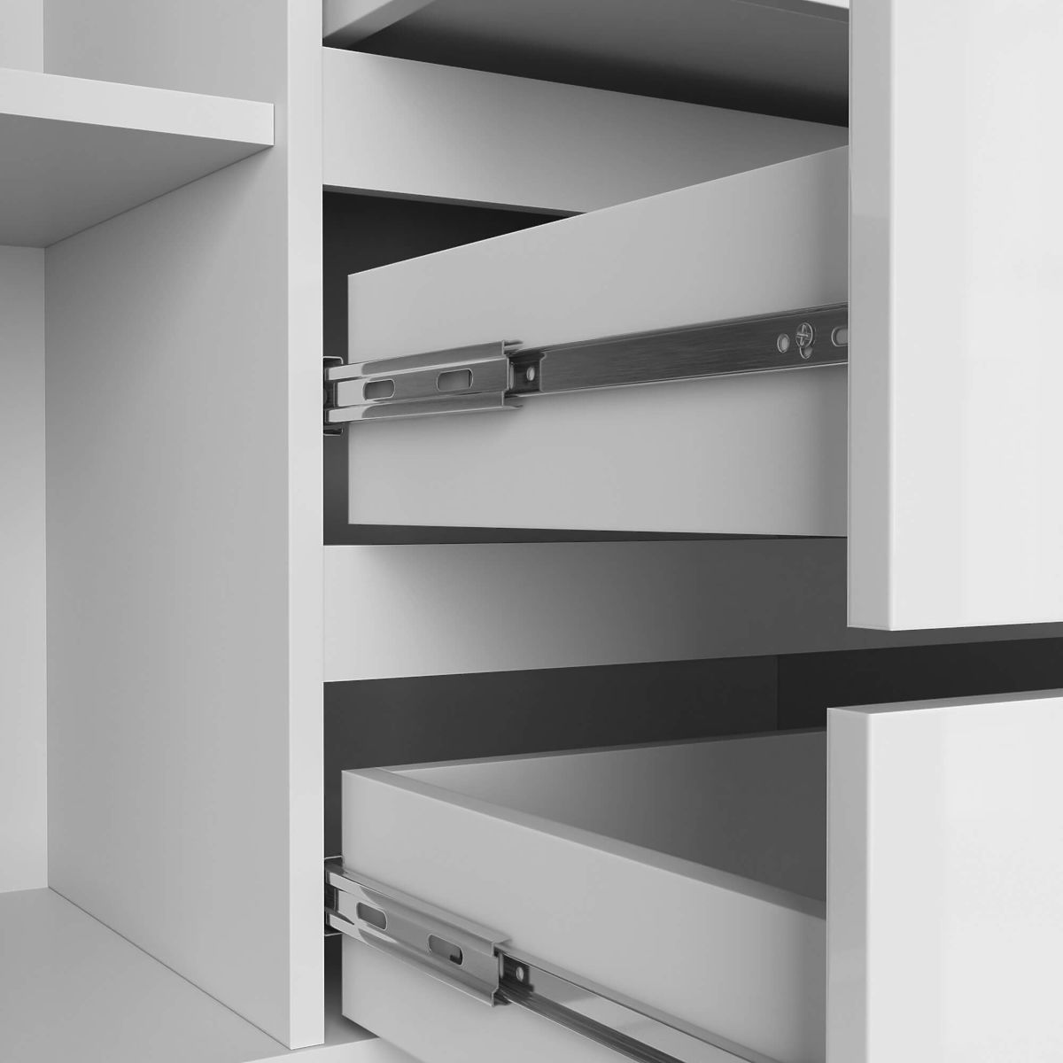 - Szuflady poruszają się na metalowych prowadnicach kulkowych