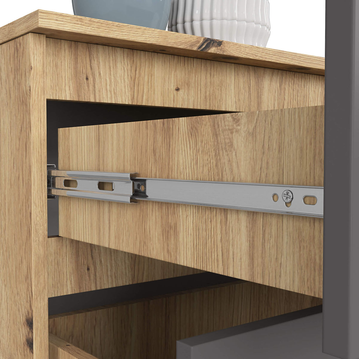 - Szuflady poruszają się na metalowych prowadnicach kulkowych