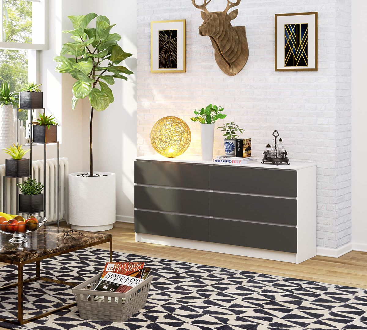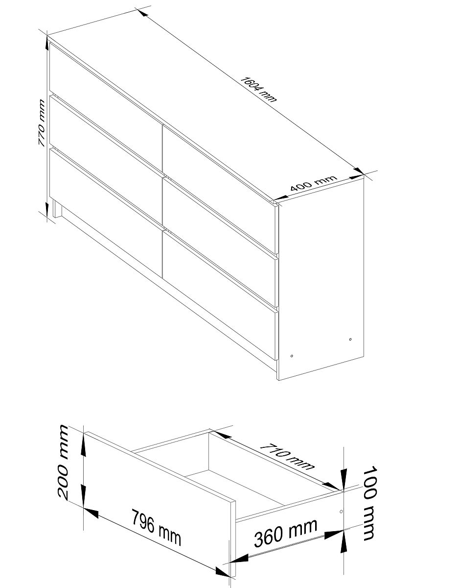 Komoda to mebel na tyle uniwersalny, że może być używany w dowolnym pomieszczeniu. Najczęściej pojawia się w salonach, pokojach dziecięcych, sypialniach, jadalniach czy biurach. Komoda powinna pasować do pozostałych mebli w aranżacji, a jednocześnie charakteryzować się solidnym i starannym wykonaniem oraz funkcjonalnością. Prezentowany produkt K 160 cm to nowoczesny model utrzymany w ponadczasowej tonacji. Połączenie bieli i grafitowej szarości z pewnością przypadnie do gustu osobom preferującym minimalistyczny styl i wnętrza urządzone w stylu skandynawskim. Komoda wyposażona jest w sześć przestronnych szuflad. Łatwo się otwiera i zamyka. Znajdzie zastosowanie zarówno w przestrzeniach mieszkalnych, jak i biurowych.