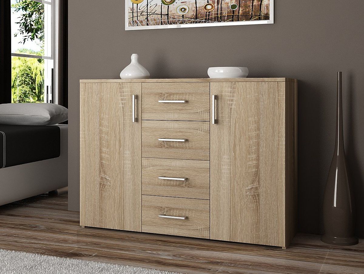 Komoda z czterema szufladami i dużymi szafkami w kolorze Dąb Sonoma. .. więcej