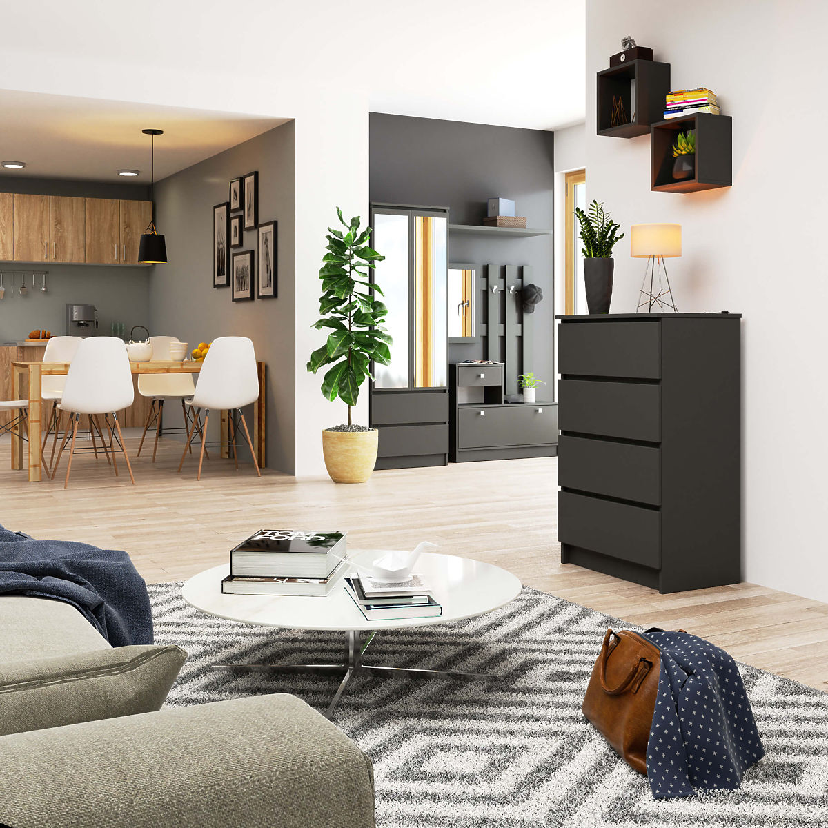 Komoda z 4 szufladami w kolorze grafit szary, wykonana z płyty laminowanej. .. więcej