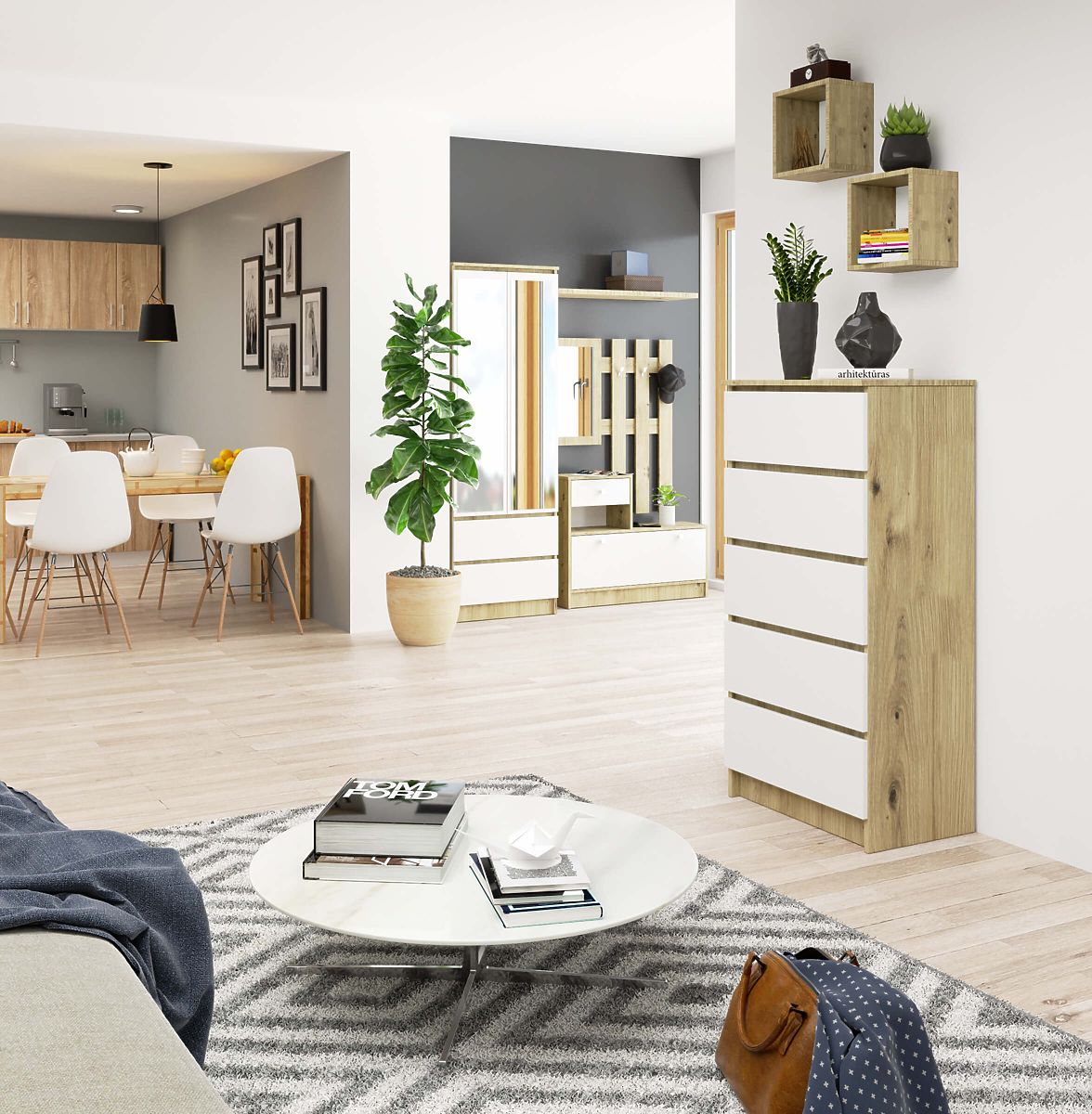 Komoda z 5 szufladami w kolorze dąb artisan i białym. .. więcej