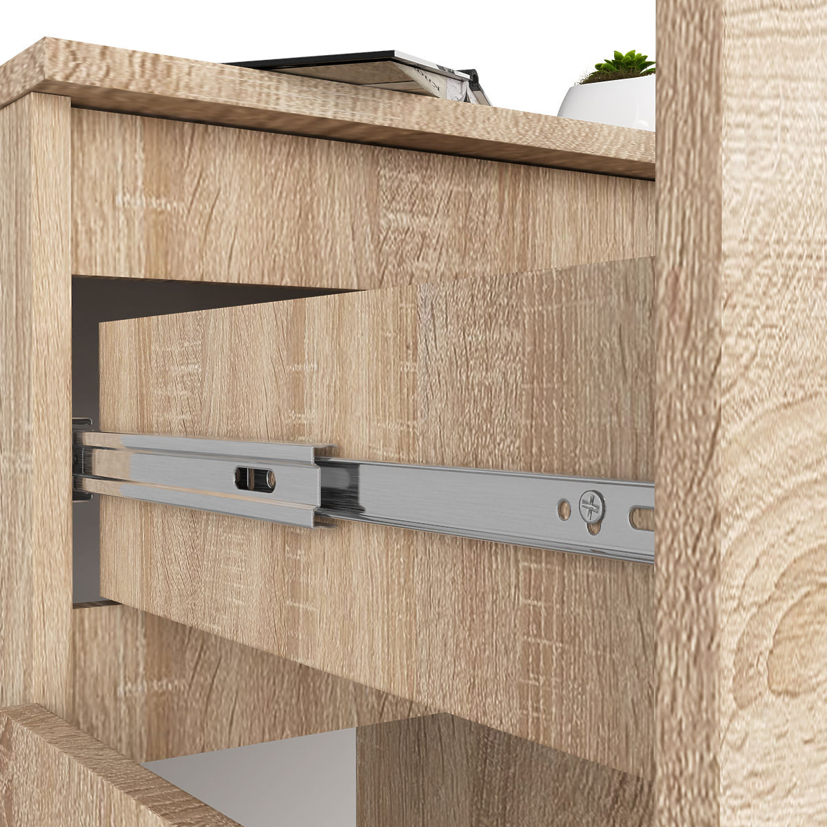 - Szuflada porusza się na metalowych prowadnicach kulkowych