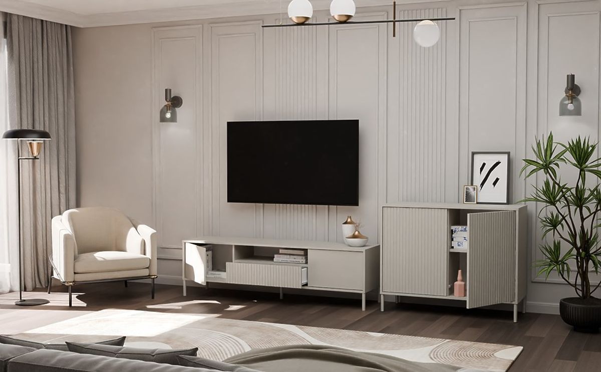Komoda z ryflowanym frontem w kolorze kašmir. .. więcej