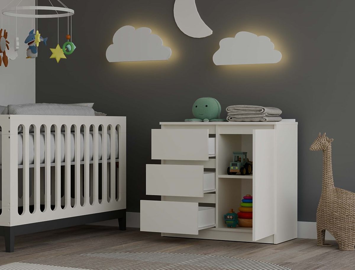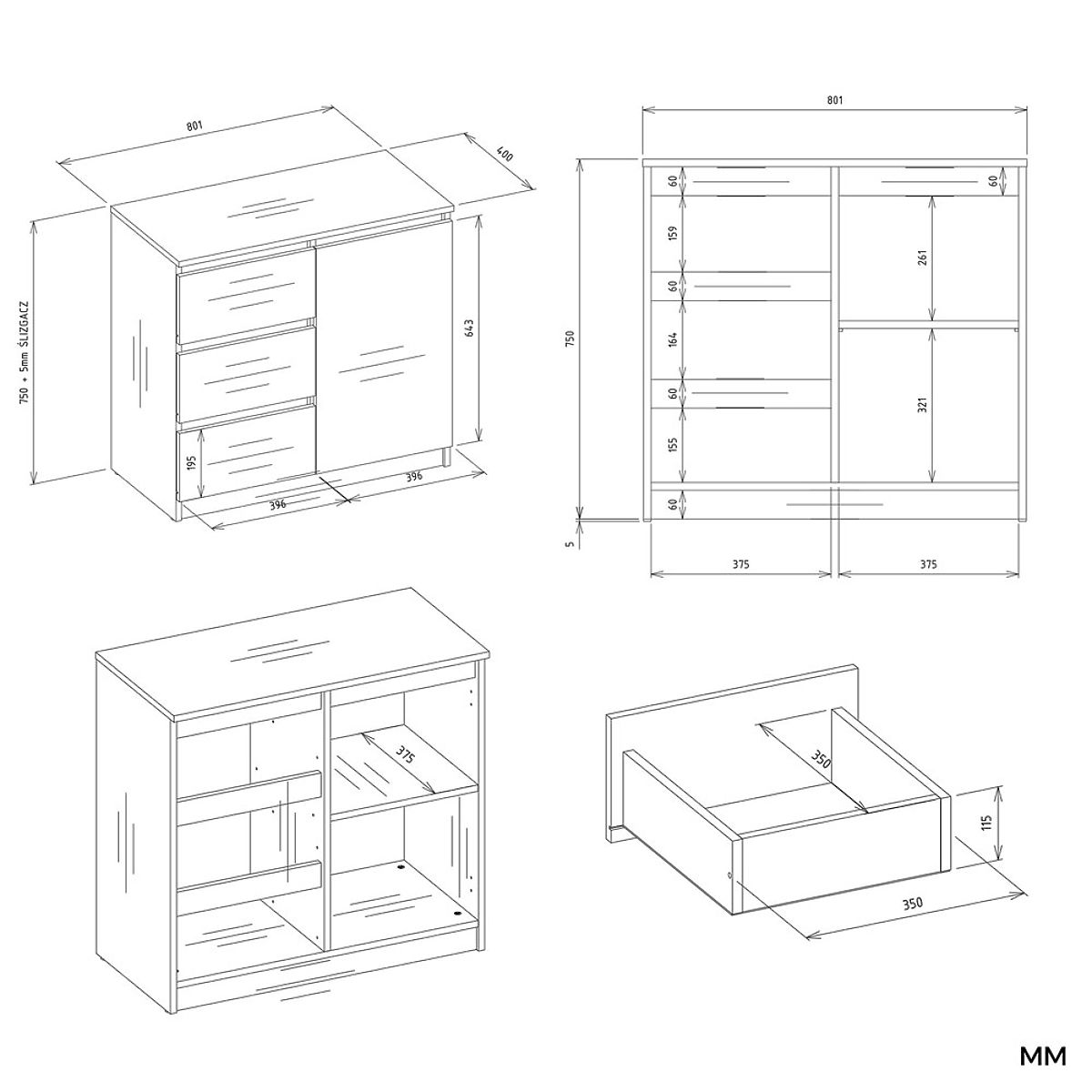 Komoda 1D3S to stylowy i praktyczny mebel, który doskonale pasuje do sypialni, salonu, przedpokoju lub pokoju dziecięcego. Dzięki przemyślanemu układowi z jednymi drzwiami i trzema przestronnymi szufladami zapewnia wygodne przechowywanie i organizację przestrzeni.