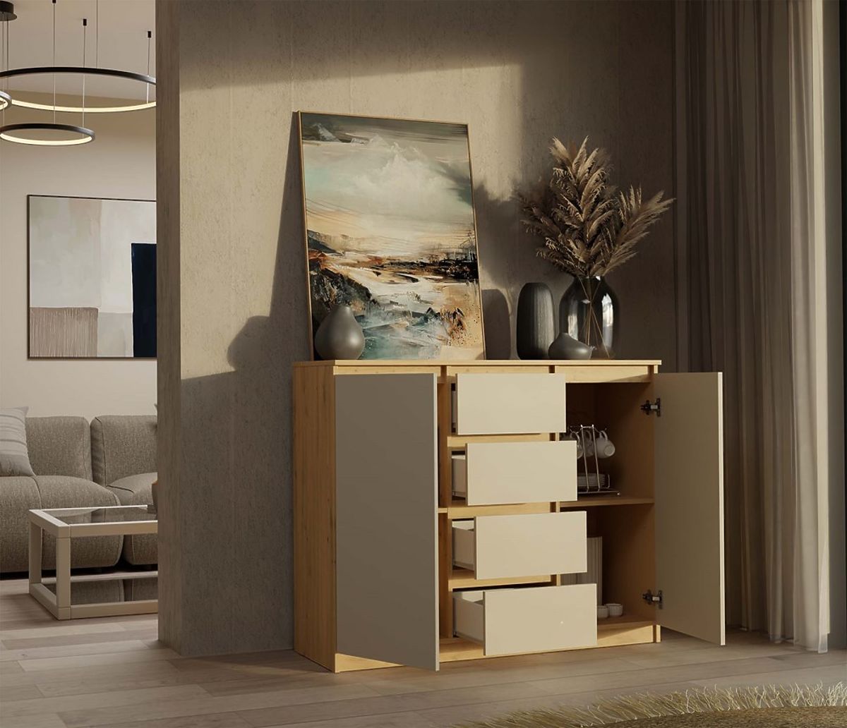 Komoda Malwa 2D4S 120 DĄB ARTISAN KASZMIR BEŻOWA