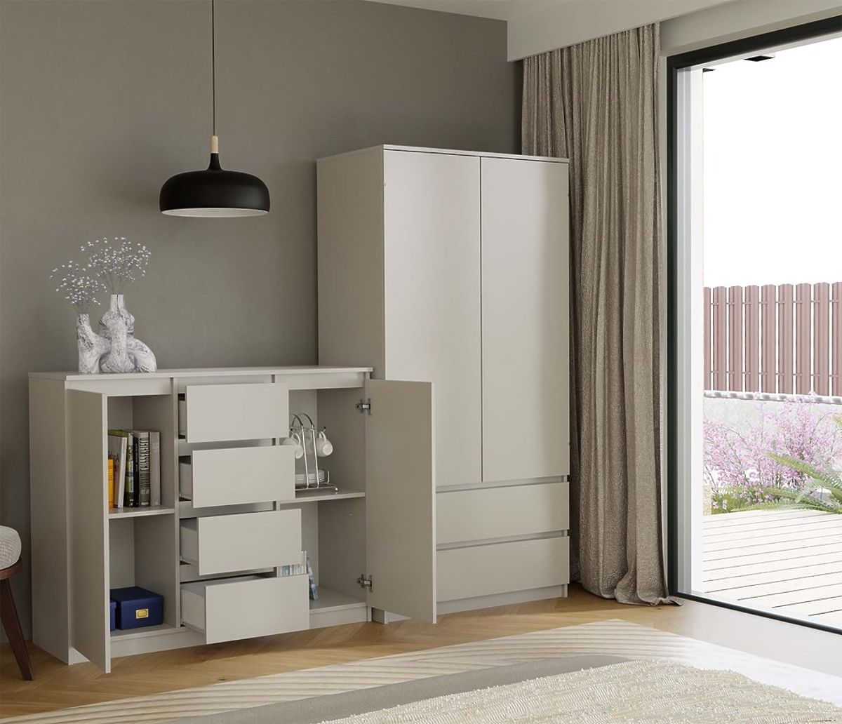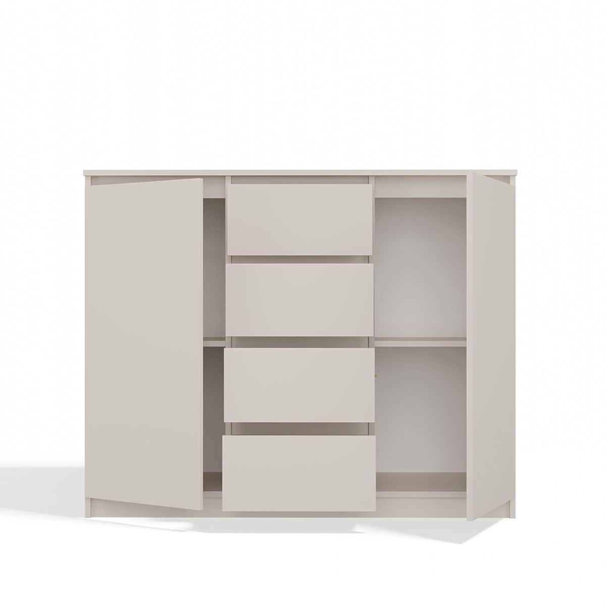Stylowa komoda z 2 parami drzwi i 4 szufladami w kolorze kašmir. .. więcej