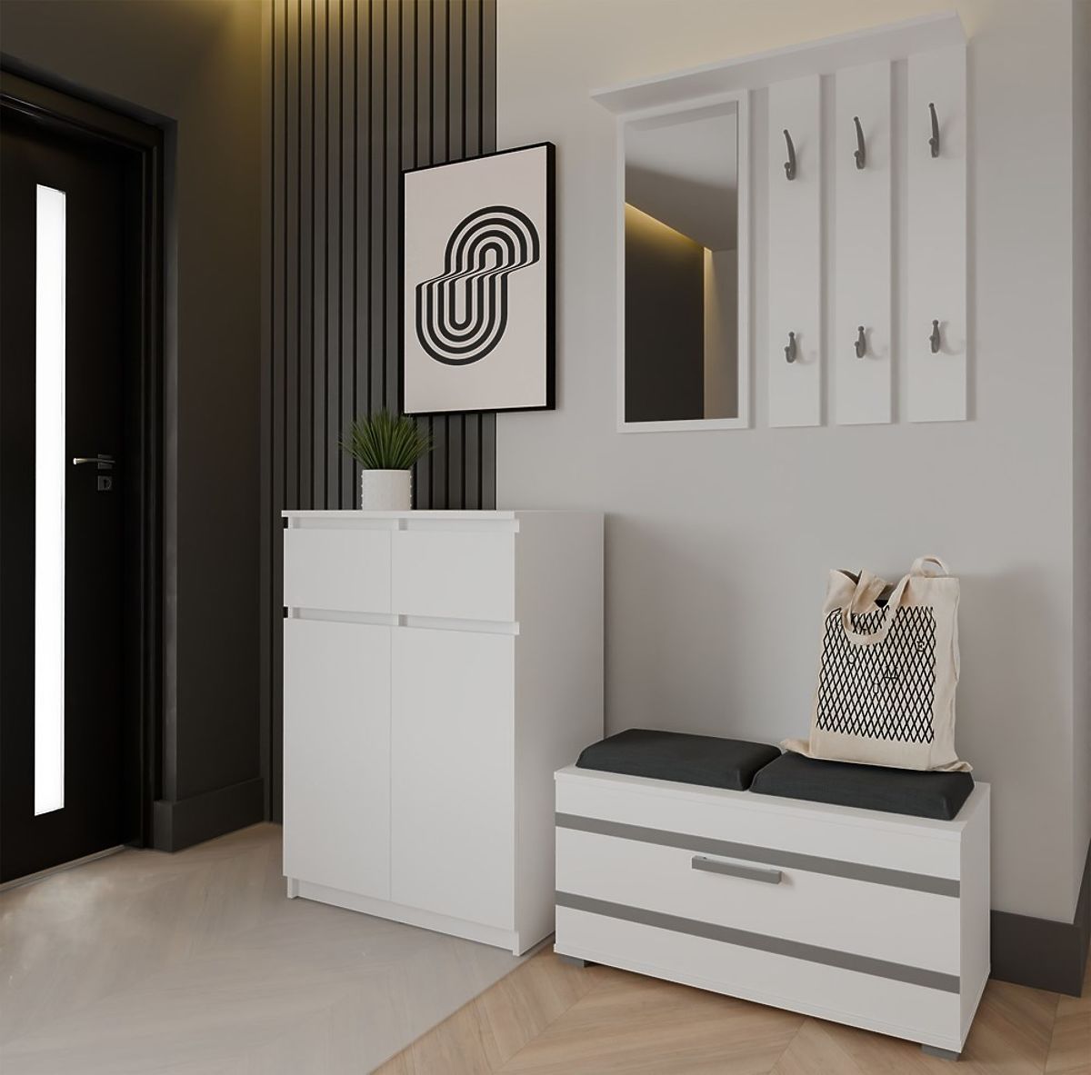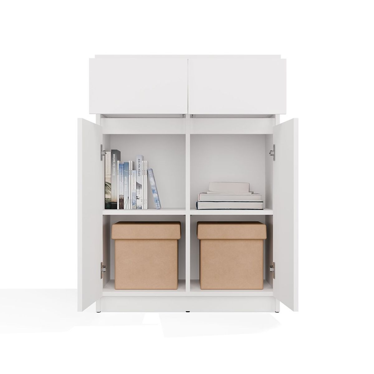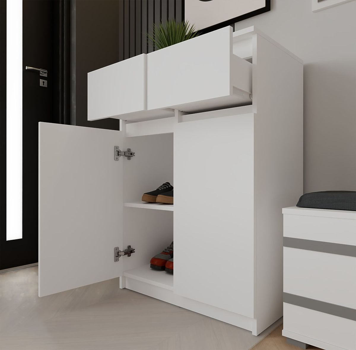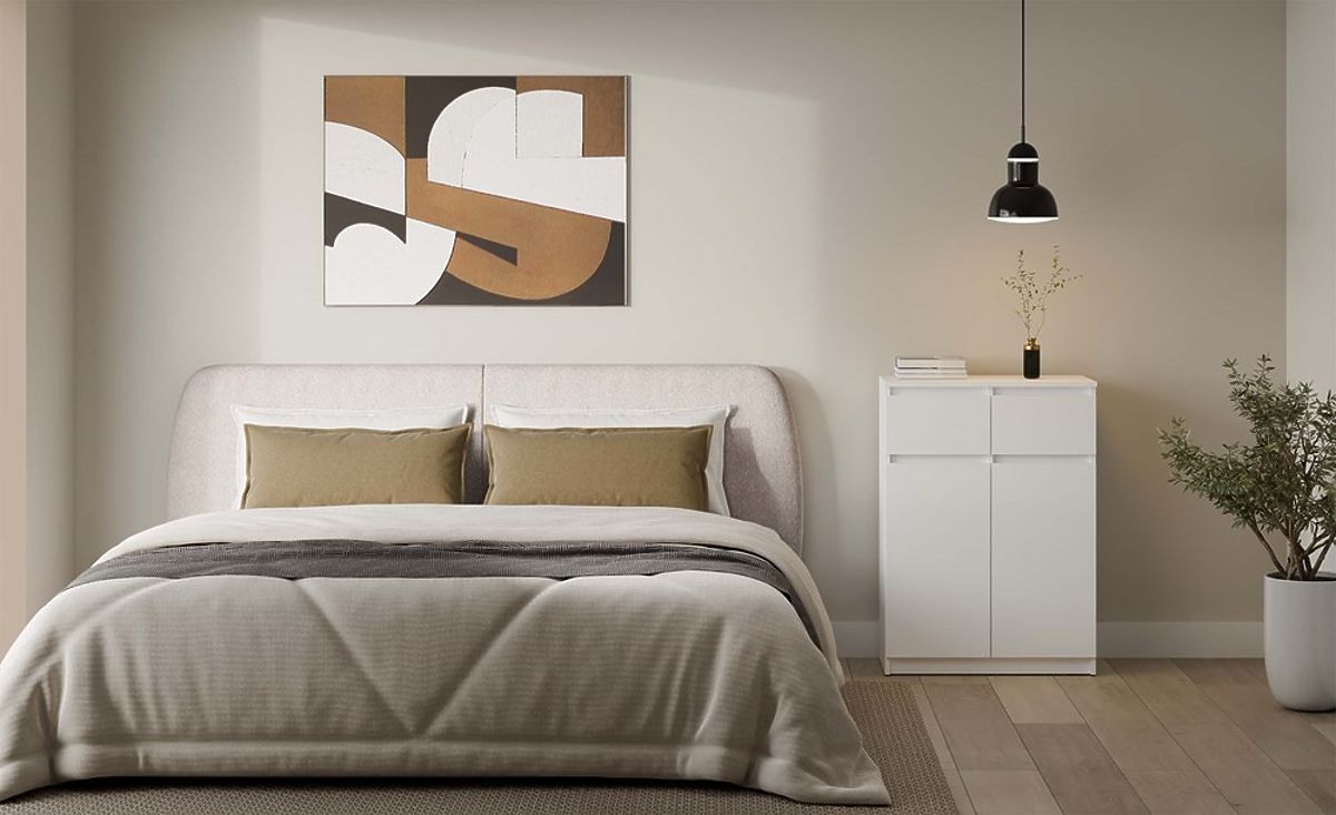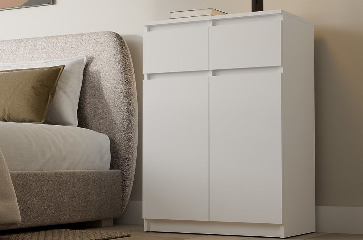 Biała komoda 2DD2S z 2 drzwiami i 2 szufladami do salonu. .. więcej