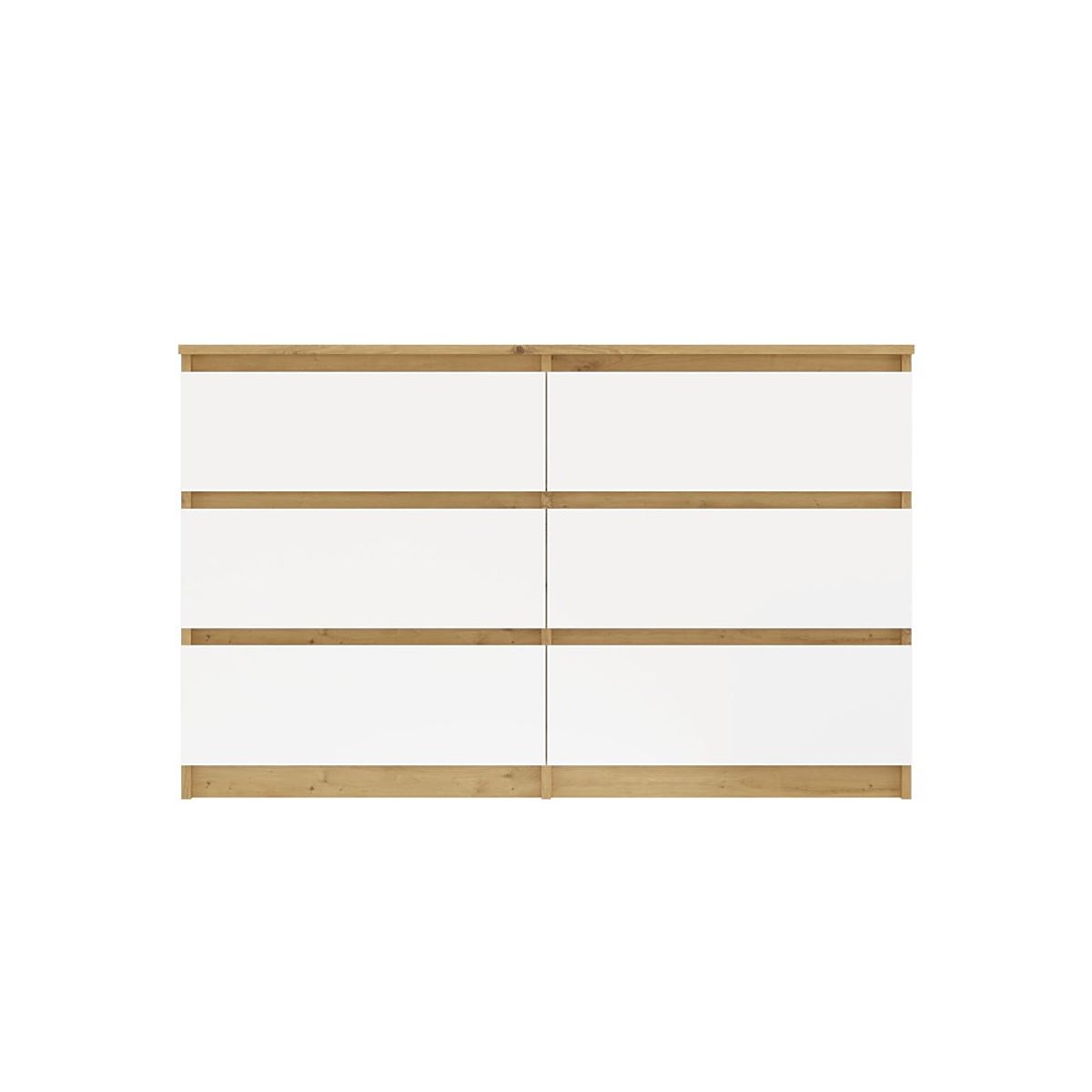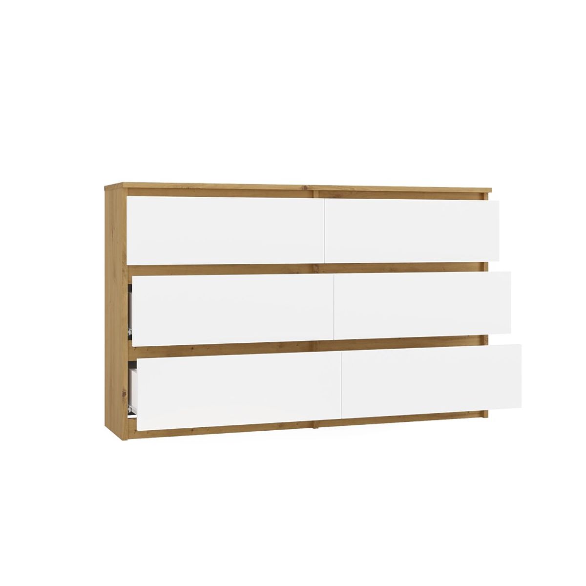 Przestronna komoda z 6 szufladami w kolorze dębu i bieli. .. więcej