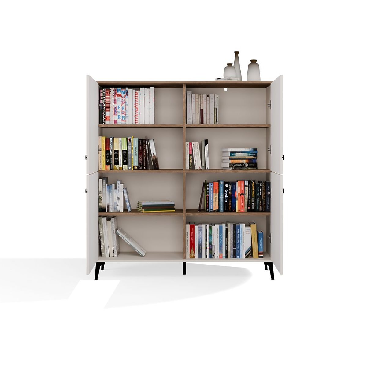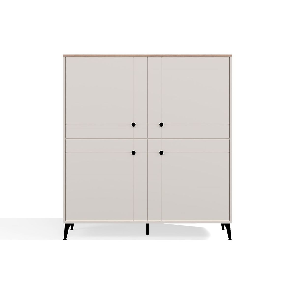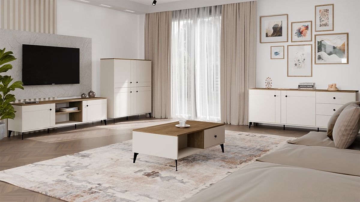 Model wyposażony jest w cztery fronty z cichym zamykaniem, za którymi kryje się aż osiem praktycznych półek – idealnych do przechowywania książek, dokumentów, tekstyliów lub codziennych dodatków.