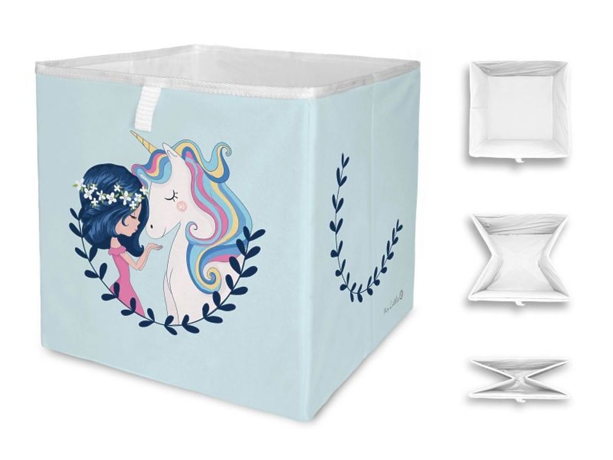 Pudełko do przechowywania dziewczynka i jednorożec 32 x 32 x 32 cm / 32 l. Nasz schowek ożywi kolorami każdą szafkę dziecięcą. Jest składany, dzięki czemu można .. więcej
