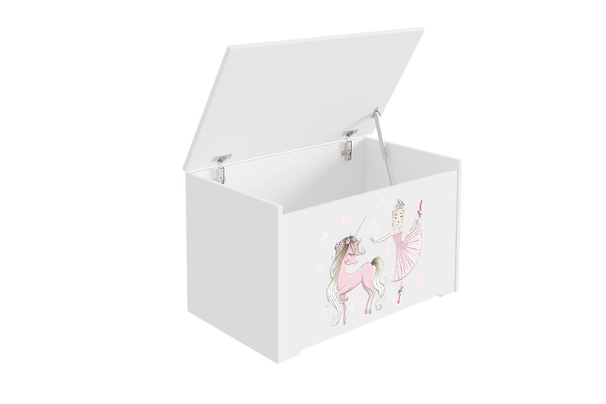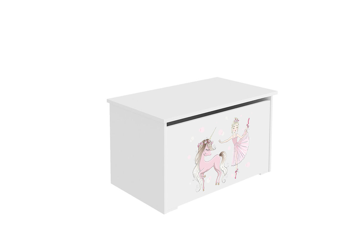 Banaby.pl » Meble dziecięce / Komody i szafy / Skrzynie na zabawki / Skrzynia na zabawki Daria biała z nadrukiem Dziewczynka z jednorożcem