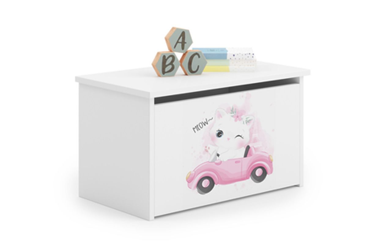 Banaby.pl » Meble dziecięce / Komody i szafy / Skrzynie na zabawki / Skrzynia na zabawki Daria biała z nadrukiem Kot