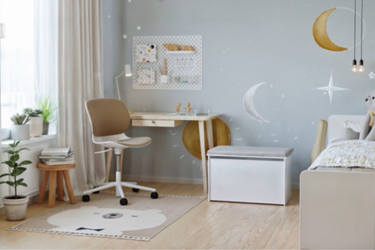 Skrzynia DARIA łączy przestronność z estetycznym wyglądem, dzięki czemu jest idealnym rozwiązaniem dla każdego pokoju dziecięcego, ale równie dobrze pasuje do innych części domu, takich jak przedpokój czy sypialnia. Tapicerowane siedzisko, pokryte miękkim materiałem, zapewnia wygodę, umożliwiając dziecku siedzenie na nim podczas zabawy lub ubierania się. Dzięki solidnemu gazowemu podnośnikowi pokrywa skrzyni otwiera się płynnie i bez wysiłku, co umożliwia dziecku łatwe i bezpieczne korzystanie z jej zawartości. Przestronne wnętrze umożliwia przechowywanie zabawek, książek i innych drobiazgów, dzięki czemu pokój zawsze będzie utrzymany w porządku. Dzięki swojemu designowi i funkcjonalności skrzynia DARIA staje się nie tylko praktycznym elementem, ale i estetycznym akcentem w pokoju dziecięcym.